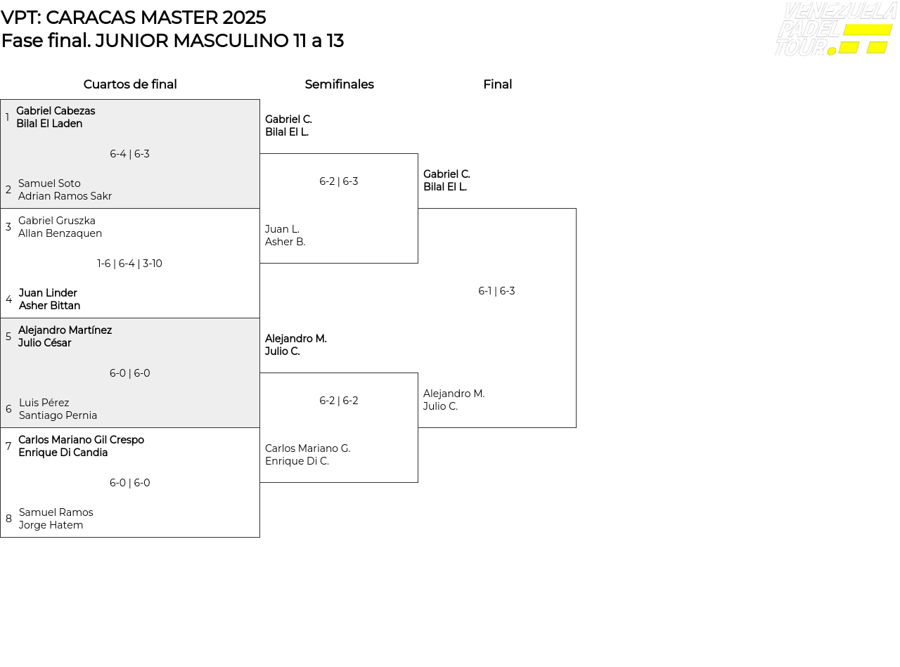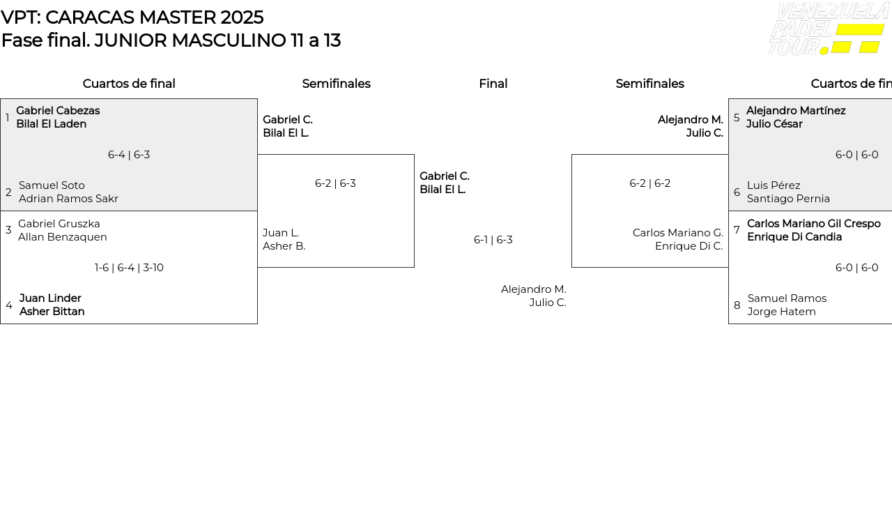 Cuadro principal JUNIOR MASCULINO 11 a 13