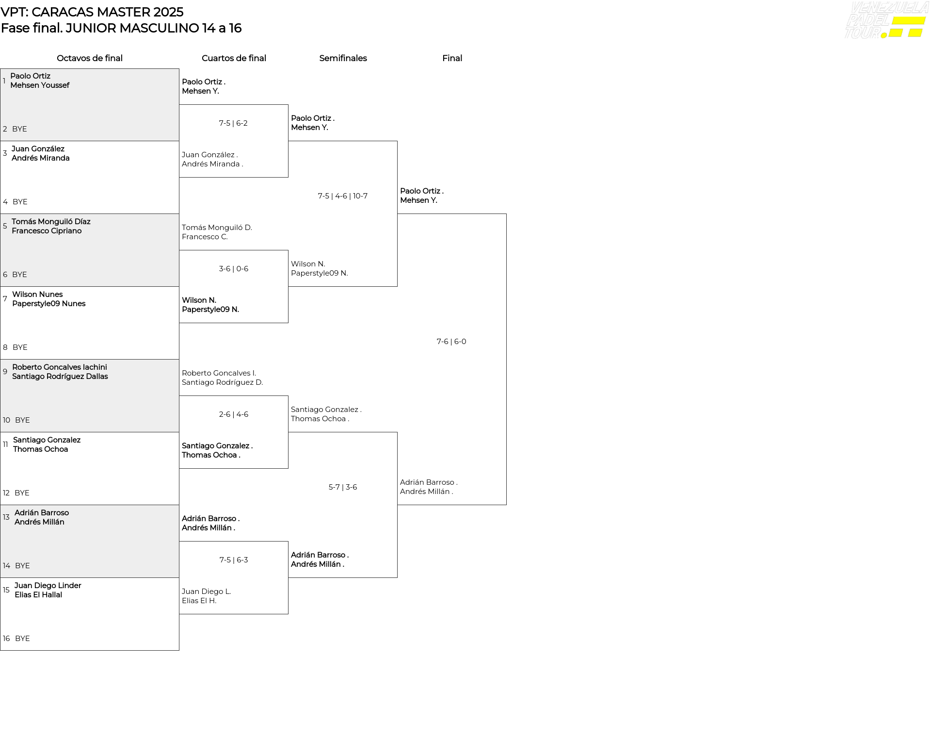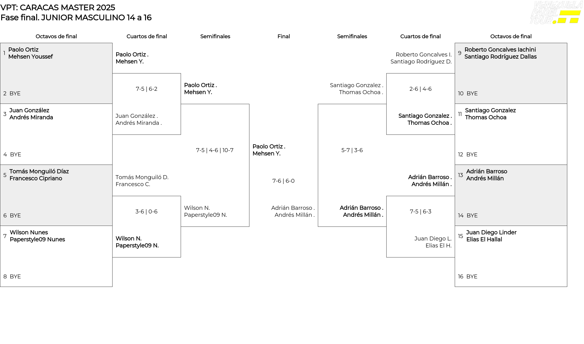Cuadro principal JUNIOR MASCULINO 14 a 16