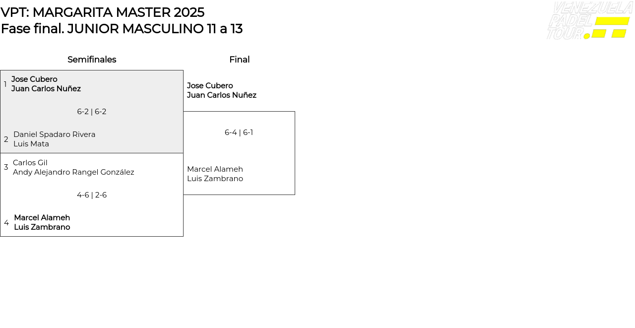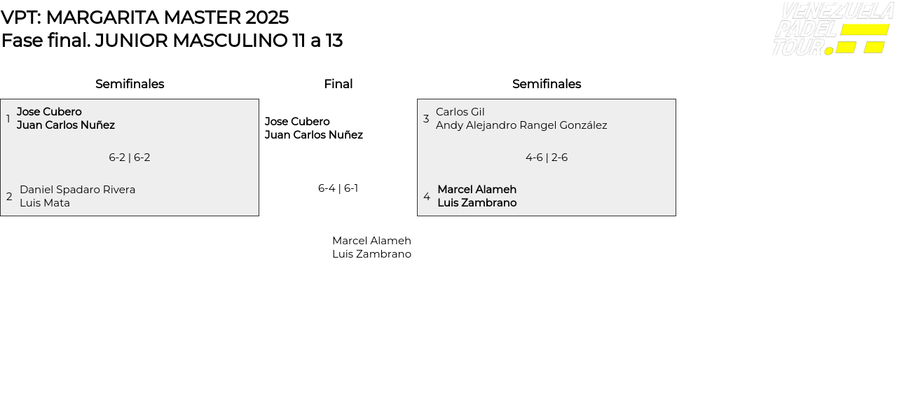 Cuadro principal JUNIOR MASCULINO 11 a 13