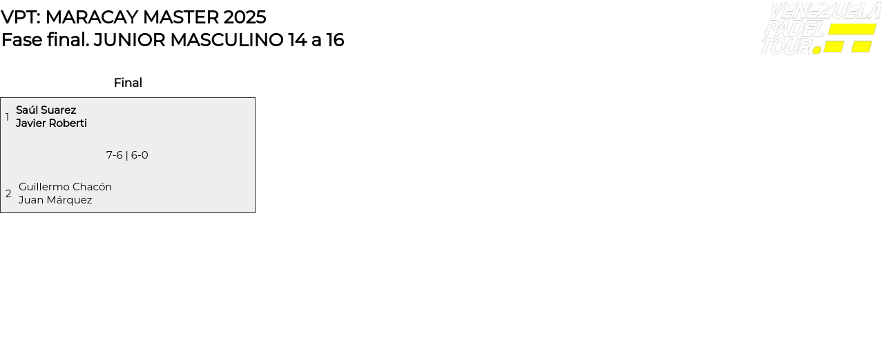 Cuadro principal JUNIOR MASCULINO 14 a 16