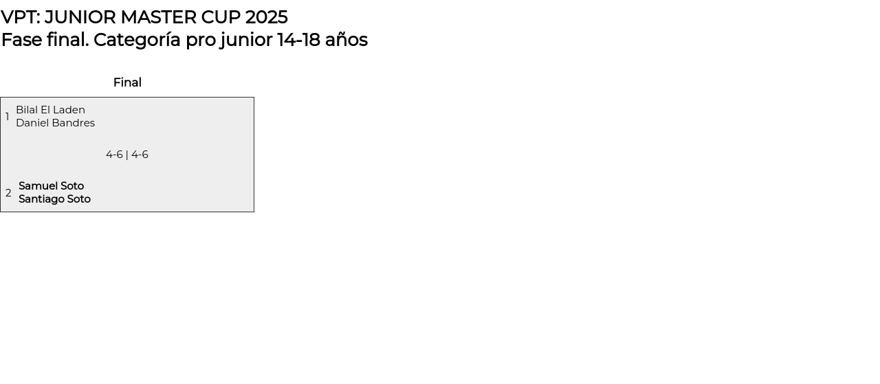 Cuadro principal Categoría pro junior 14-18 años