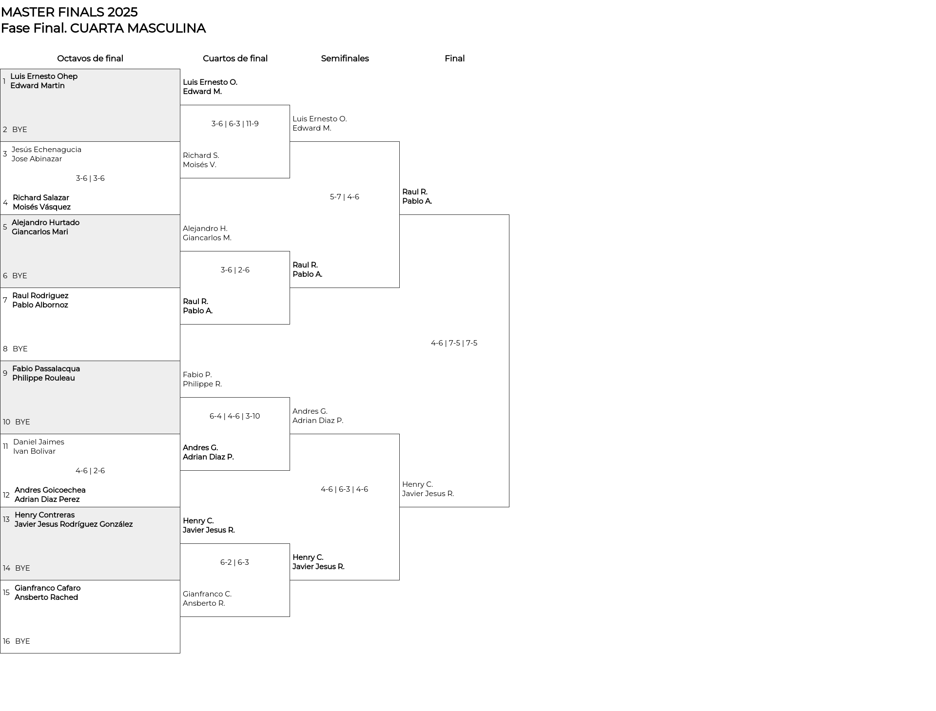 Cuadro principal CUARTA MASCULINA
