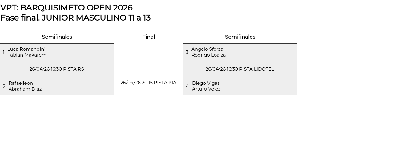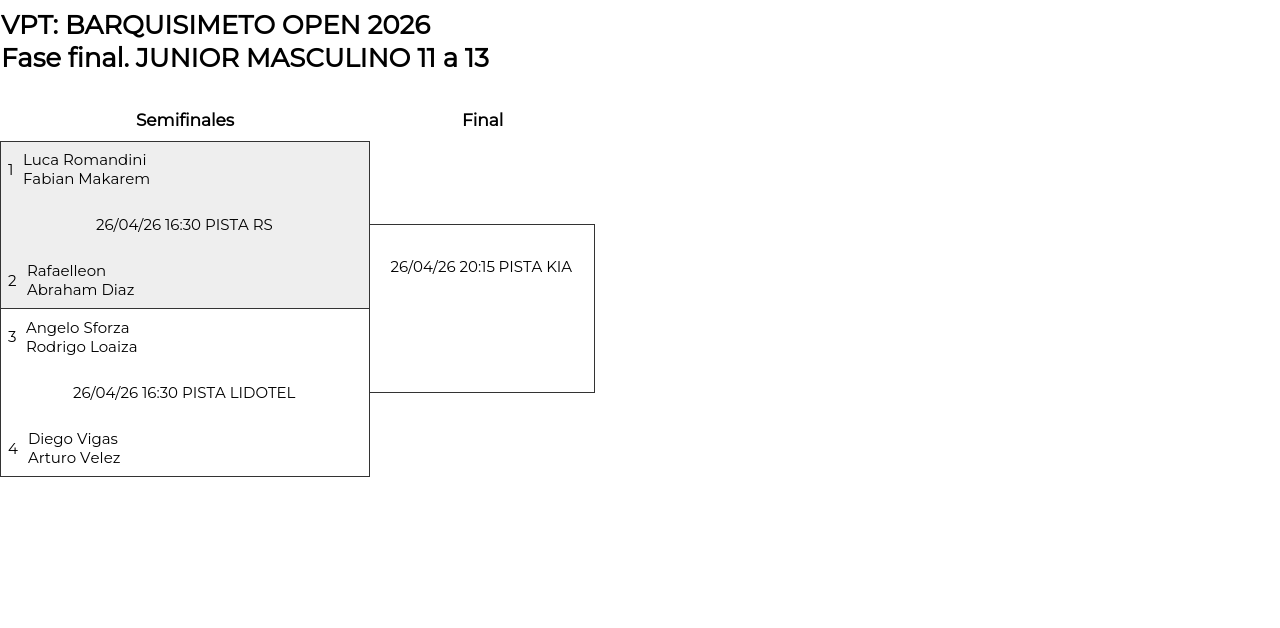 Cuadro principal JUNIOR MASCULINO 11 a 13